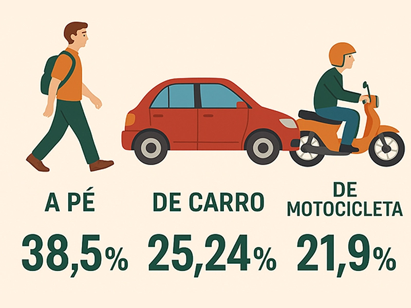 Meios de transporte: 38,5% vão a pé, mas quase metade usa veículo motorizado