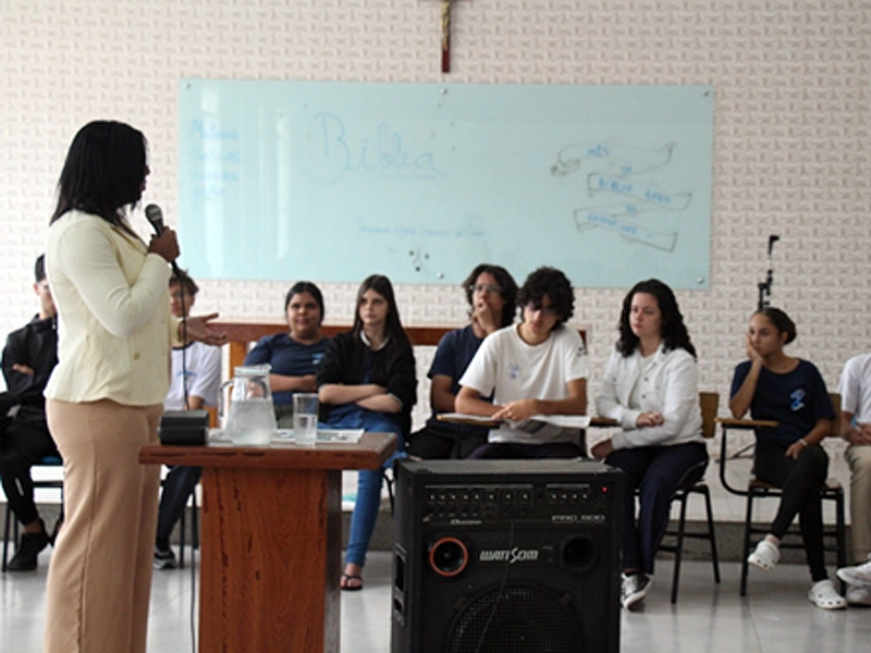 O encontro teve um significado especial: Nohemy foi aluna da escola entre os anos de 2004 e 2010, período em que também teve contato com os gêneros textuais notícia e reportagem, os mesmos conteúdos atualmente trabalhados pela professora Ísis nas aulas de Língua Portuguesa. Durante a conversa, a jornalista compartilhou suas experiências e destacou a importância da escola em sua formação.
