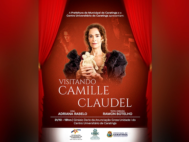 CARATINGA – Há encontros que ultrapassam o tempo e o espaço. No Congresso UNEC, a arte se torna ponte entre séculos, vozes e silêncios. É nesse contexto que o espetáculo “Visitando Camille Claudel” chega a Caratinga – no dia 31 de outubro, às 19h, no Ginásio do Centro de Convenções FUNEC – em apresentação exclusiva para educadores da rede municipal e inscritos no evento.