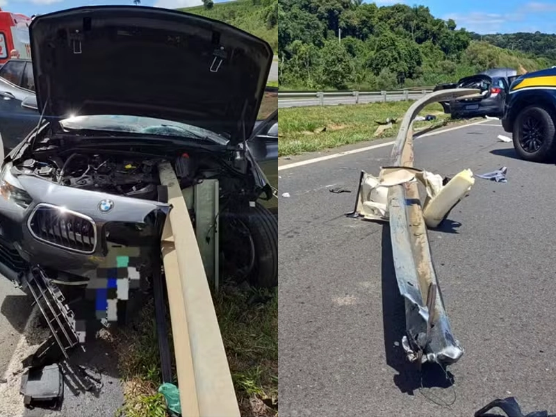 Criança morre após BMW ser atravessada por guard rail no PR; família estava voltando da praia