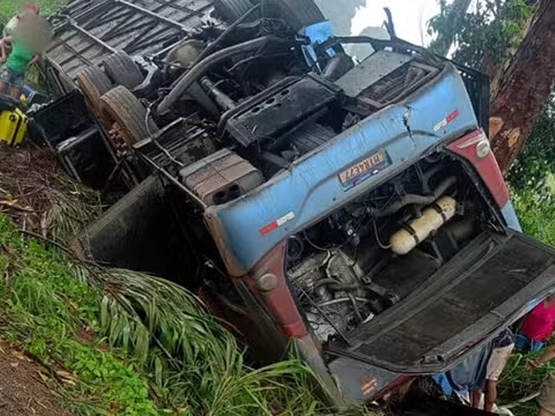 Cinco passageiros morrem após ônibus capotar na BR-365 em MG