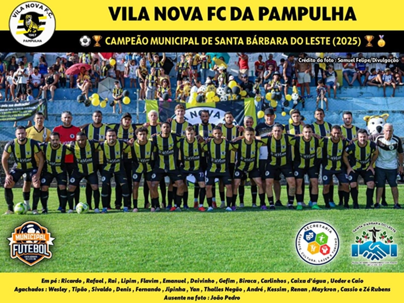 Vila Nova vence Boa Esperança e conquista a Copa Municipal de Futebol SANTA BÁRBARA DO LESTE – A Copa Municipal de Futebol de Santa Bárbara do Leste chegou ao fim com uma edição marcada por integração, competitividade e compromisso social. O torneio reuniu 117 jogadores,
