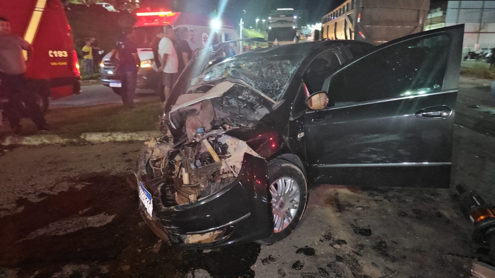 “O Corpo de Bombeiros foi acionado pelo Copom com a informação de vítimas presas e em estado grave. No local, havia duas vítimas no Linea. O condutor estava preso às ferragens e foi necessário realizar o rebatimento do painel para a retirada. Ele apresentava múltiplas fraturas nos membros inferiores”, explicou.
