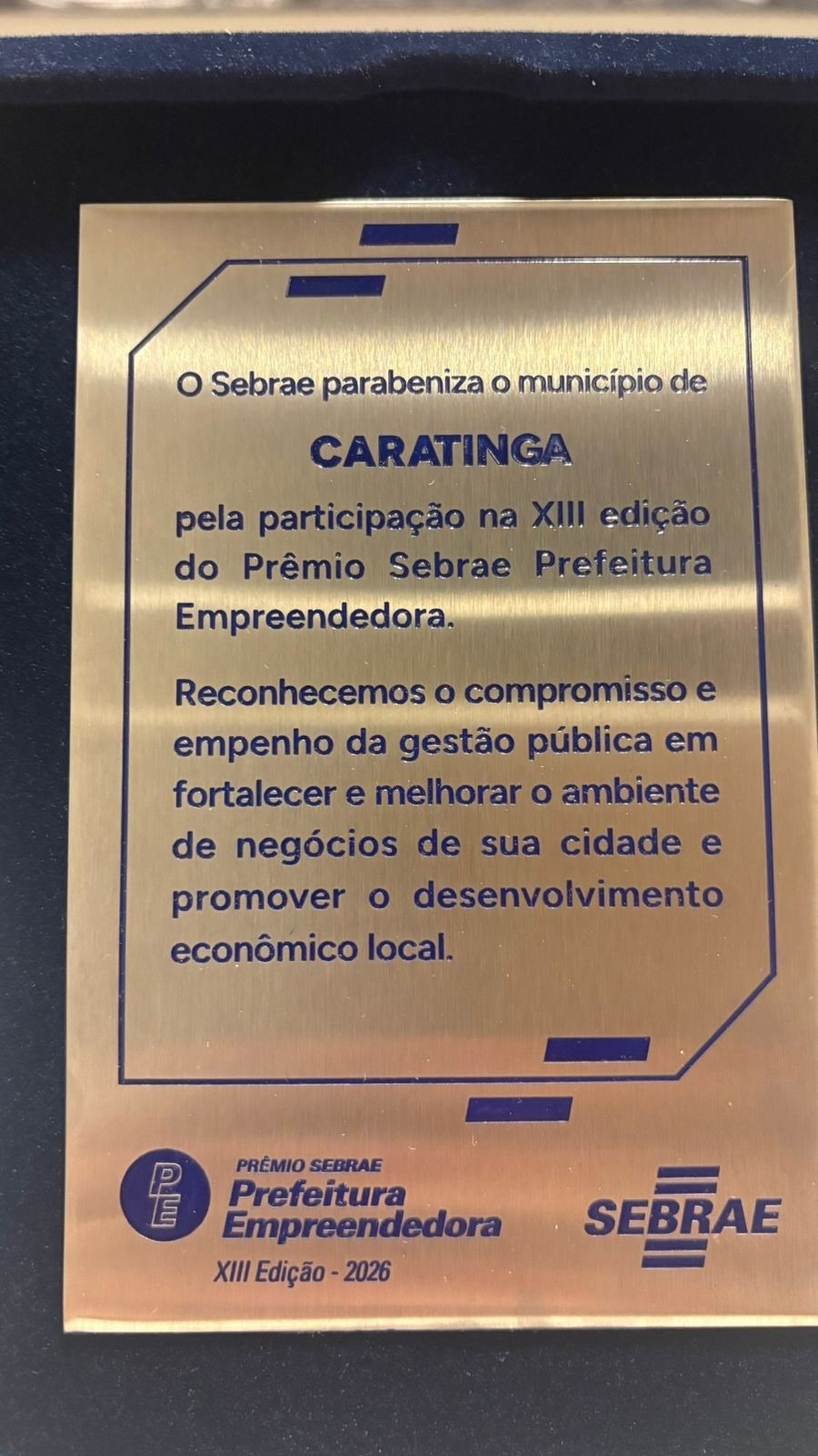 Durante o evento, Caratinga se destacou como referência no incentivo ao empreendedorismo e no fortalecimento dos pequenos negócios. Como resultado desse trabalho, o município foi contemplado com o Prêmio Sebrae Prefeitura Empreendedora, reconhecimento concedido às melhores práticas de gestão pública voltadas ao desenvolvimento econômico, inovação e estímulo à atividade empreendedora.